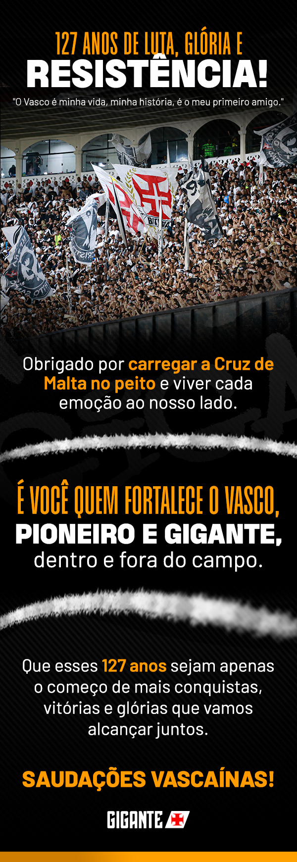 Vasco envia mensagem aos sócios em celebração aos 127 anos; confira quinta-feira, 21/08/2025 às 18:45 — Em Últimas notícias