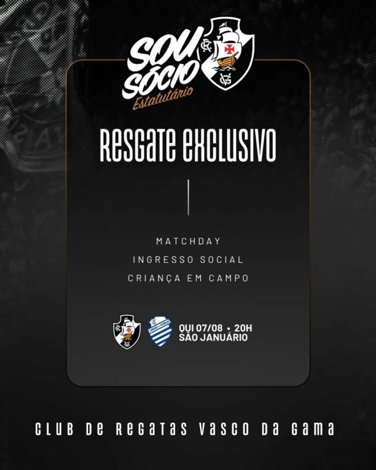 Sócios estatutários do Vasco poderão fazer resgates para a partida contra o CSA nesta quarta-feira a partir das 17h. quarta-feira, 06/08/2025 às 16:14 — Em Últimas notícias