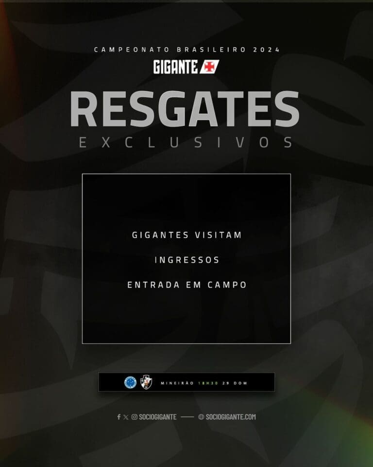 Sócios do Vasco poderão realizar resgates para a partida contra o Cruzeiro nesta sexta-feira, a partir das 18h. sexta-feira, 27/09/2024 às 17:03 — Em Últimas notícias