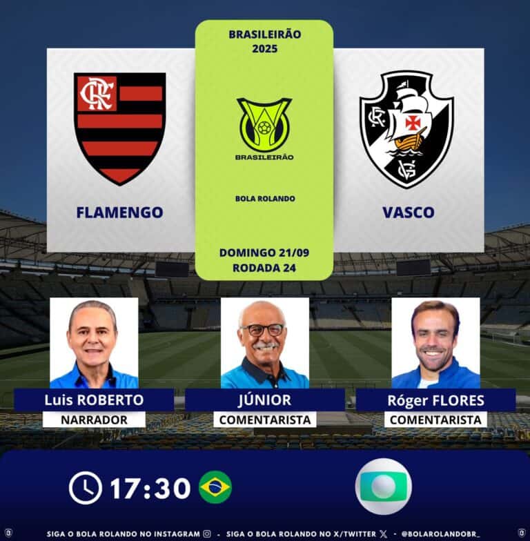 Flamengo x Vasco: transmissão na TV Globo, ge tv e Premiere. sábado, 20/09/2025 às 06:22 — Em Últimas notícias