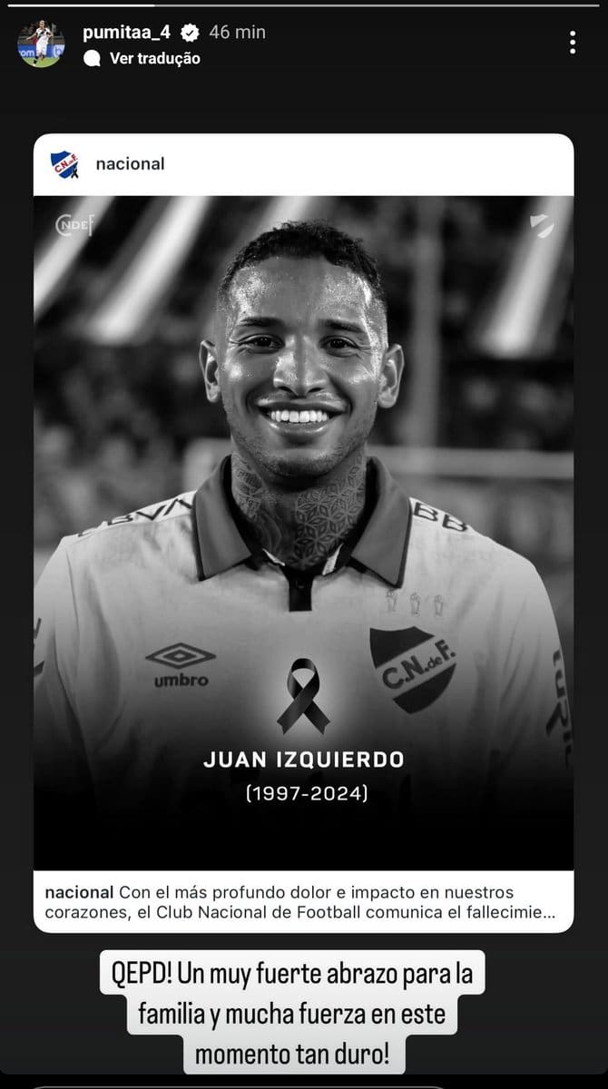 Puma Rodríguez homenageia Juan Izquierdo, companheiro uruguaio falecido terça-feira, 27/08/2024 às 23:57 — Em Últimas notícias