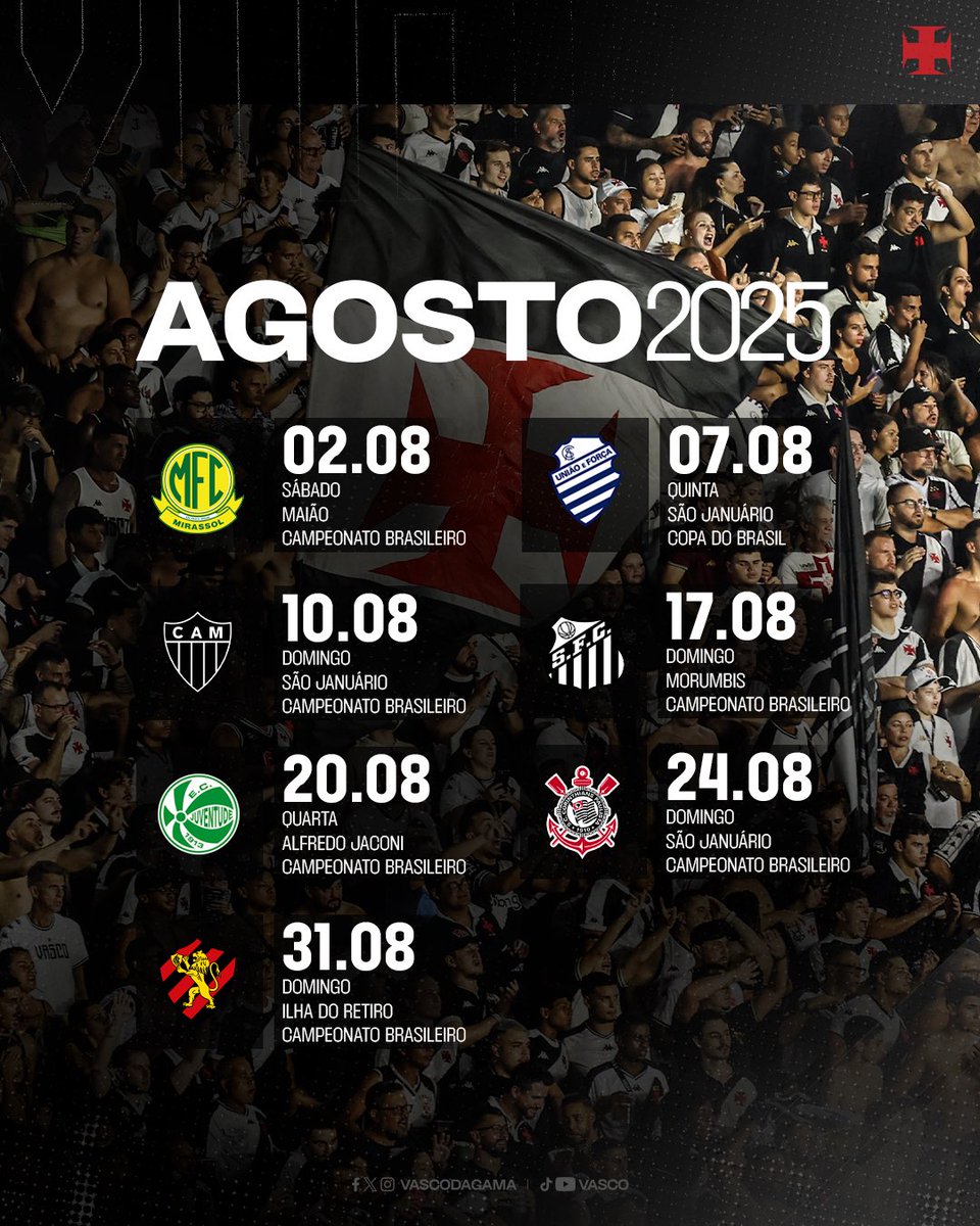 Dê uma olhada nas partidas do Vasco no mês de agosto. sexta-feira, 01/08/2025 às 22:49 — Em Últimas notícias