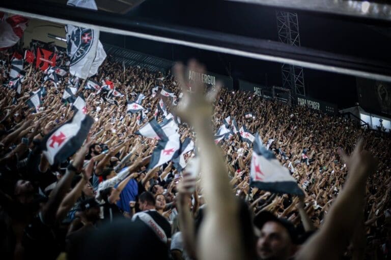 Confira a foto incrível do estádio de São Januário lotado durante um jogo do Vasco! 🏟️⚽ #VamosVasco