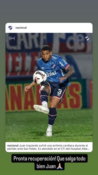O cantor Puma Rodríguez demonstra solidariedade ao zagueiro Izquierdo, do Nacional, que se encontra na UTI, enviando-lhe desejos de pronta recuperação.