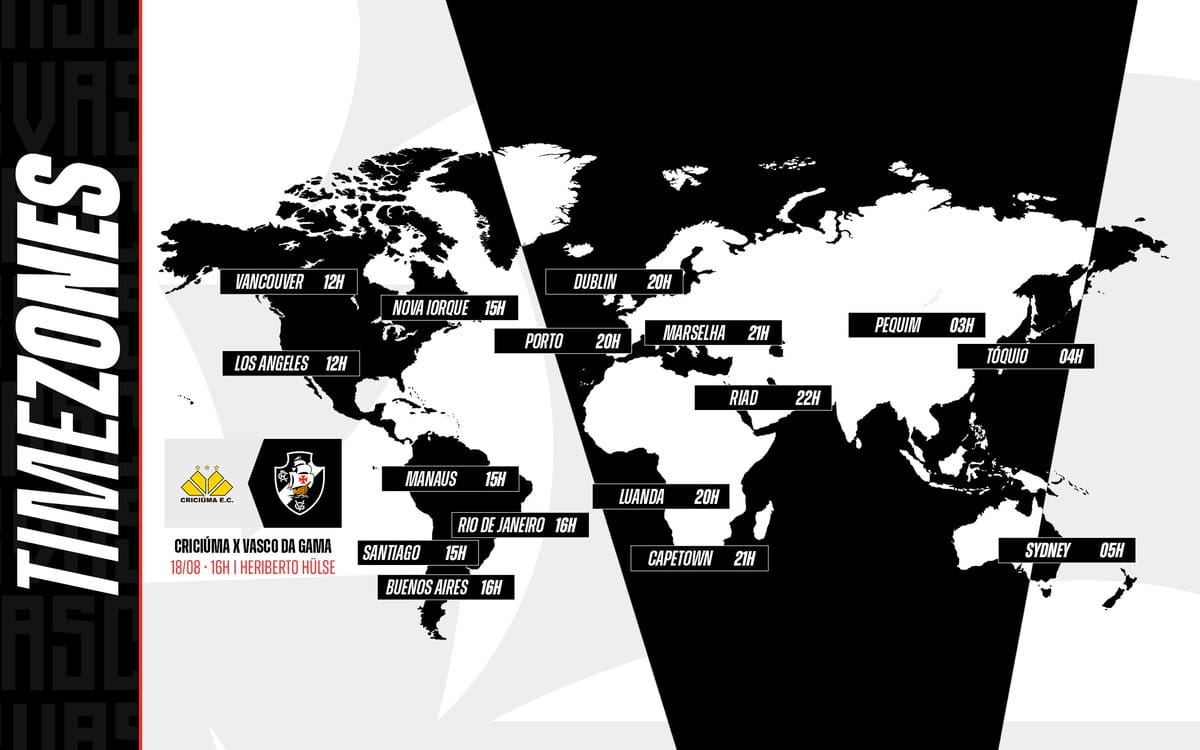 Vasco divulga horário da partida contra o Criciúma em diferentes fusos horários ao redor do mundo domingo, 18/08/2024 às 12:46 — Em Últimas notícias