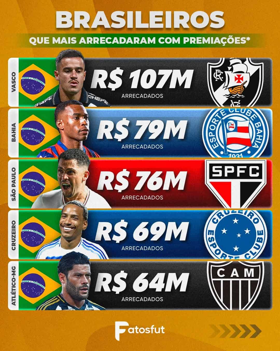 Vasco é o 6º clube com maior arrecadação por premiações no Brasil terça-feira, 23/12/2025 às 18:44 — Em Últimas notícias