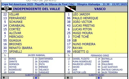 Interlúdio no Atahualpa: Vasco sofre desvantagem de 1 a 0 para o Independiente del Valle terça-feira, 15/07/2025 às 22:26 — Em Últimas notícias