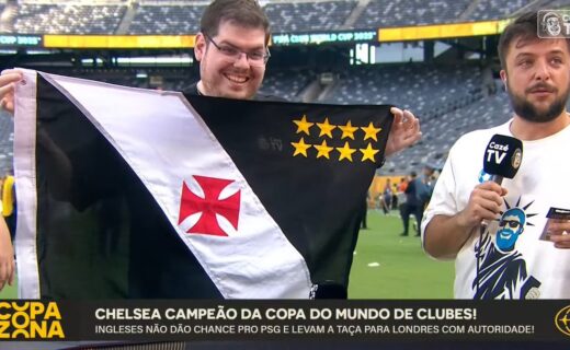 Casimiro Miguel, proprietário da CazéTV, ostenta a bandeira do Vasco no estádio que acolheu a final da Copa do Mundo de Clubes. domingo, 13/07/2025 às 23:55 — Em Últimas notícias