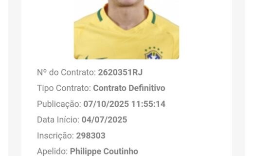Registro do novo contrato de Philippe Coutinho no BID permite que o jogador enfrente o Botafogo. quinta-feira, 10/07/2025 às 12:35 — Em Últimas notícias