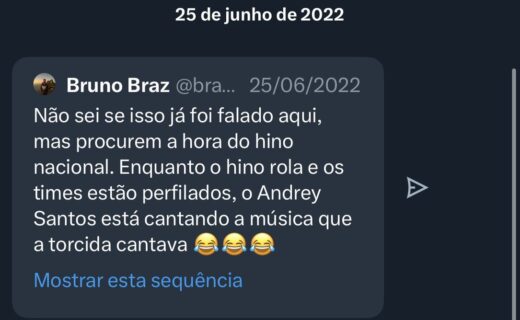 Repórter recorda diálogo com Andrey Santos após o jovem entoar canção da torcida do Vasco durante o hino nacional. terça-feira, 08/07/2025 às 09:24 — Em Últimas notícias