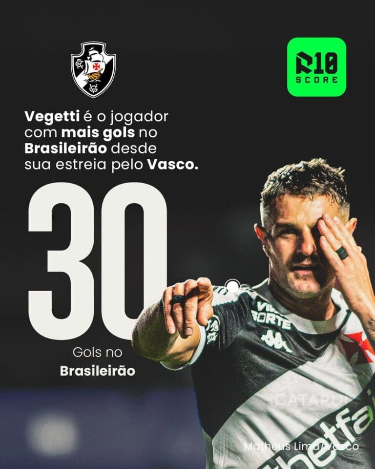 Vegetti empata com Bebeto na lista dos maiores goleadores do Vasco na Série A. História e emoção em campo! 🏆⚽️