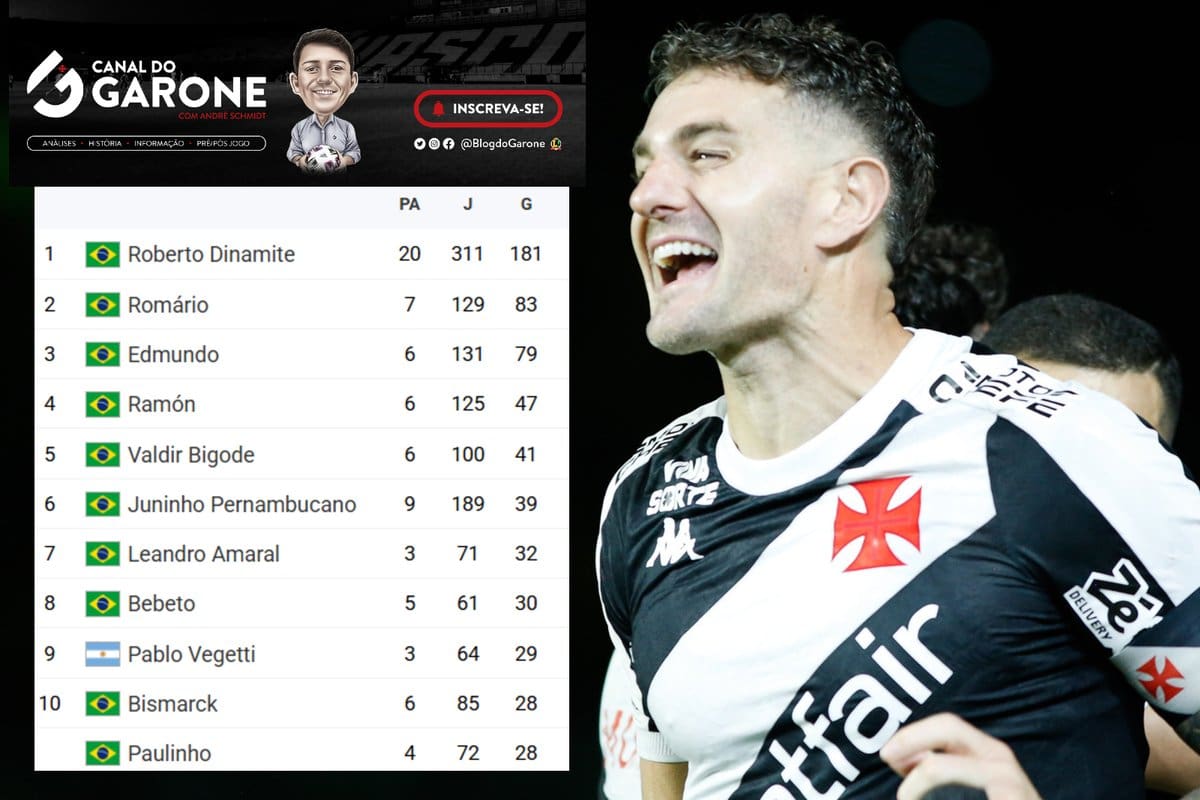 Vegetti supera Bismarck e Paulinho Massariol e se firma entre os 10 principais artilheiros do Vasco no Brasileiro domingo, 18/05/2025 às 11:51 — Em Últimas notícias