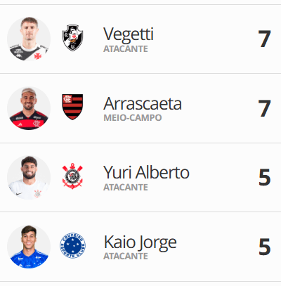 Com 7 gols, Vegetti se destaca como um dos artilheiros do Campeonato Brasileiro. domingo, 18/05/2025 às 23:20 — Em Últimas notícias