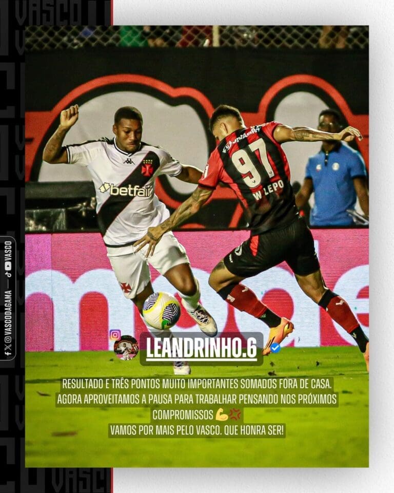 Confira as reações dos jogadores do Vasco após a partida contra o Vitória nas redes sociais. O time compartilhou mensagens de agradecimento aos torcedores e comentários sobre a atuação no jogo.