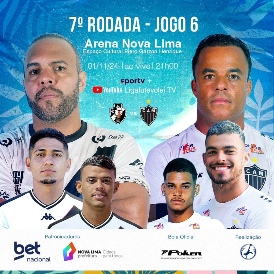 Futevôlei: Na 6ª-feira, às 21h, o Vasco se confronta com o Atlético-MG na 7ª rodada da Liga Nacional, em Nova Lima. sexta-feira, 01/11/2024 às 00:45 — Em Últimas notícias