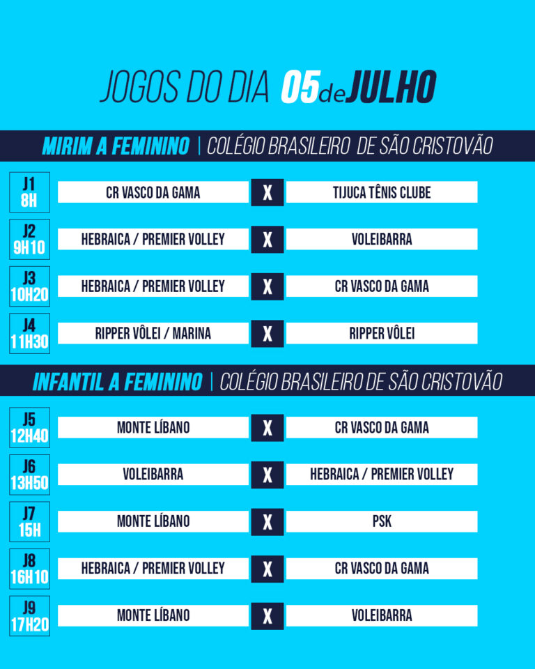 Vôlei Feminino: Não perca a partida entre Hebraica/Premier Volley e Vasco no campeonato mirim A Liverj! sábado, 05/07/2025 às 10:31 — Em Vôlei Feminino