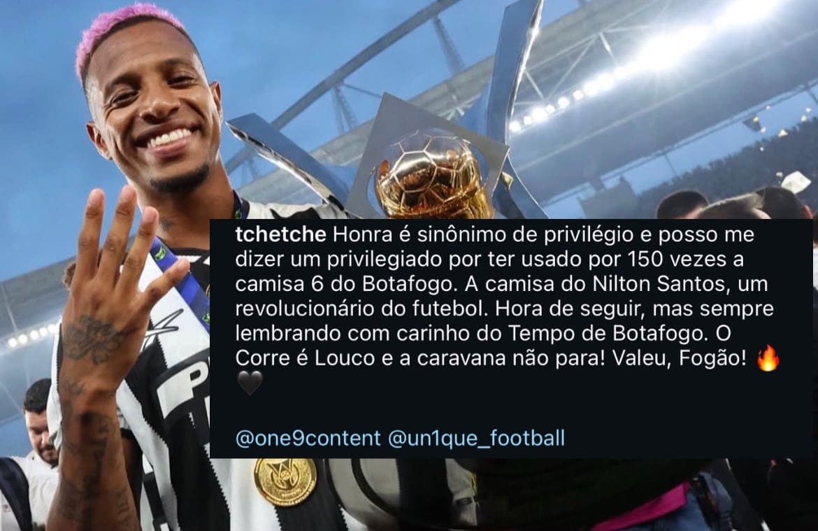 Tchê Tchê se despede do Botafogo nas redes sociais.