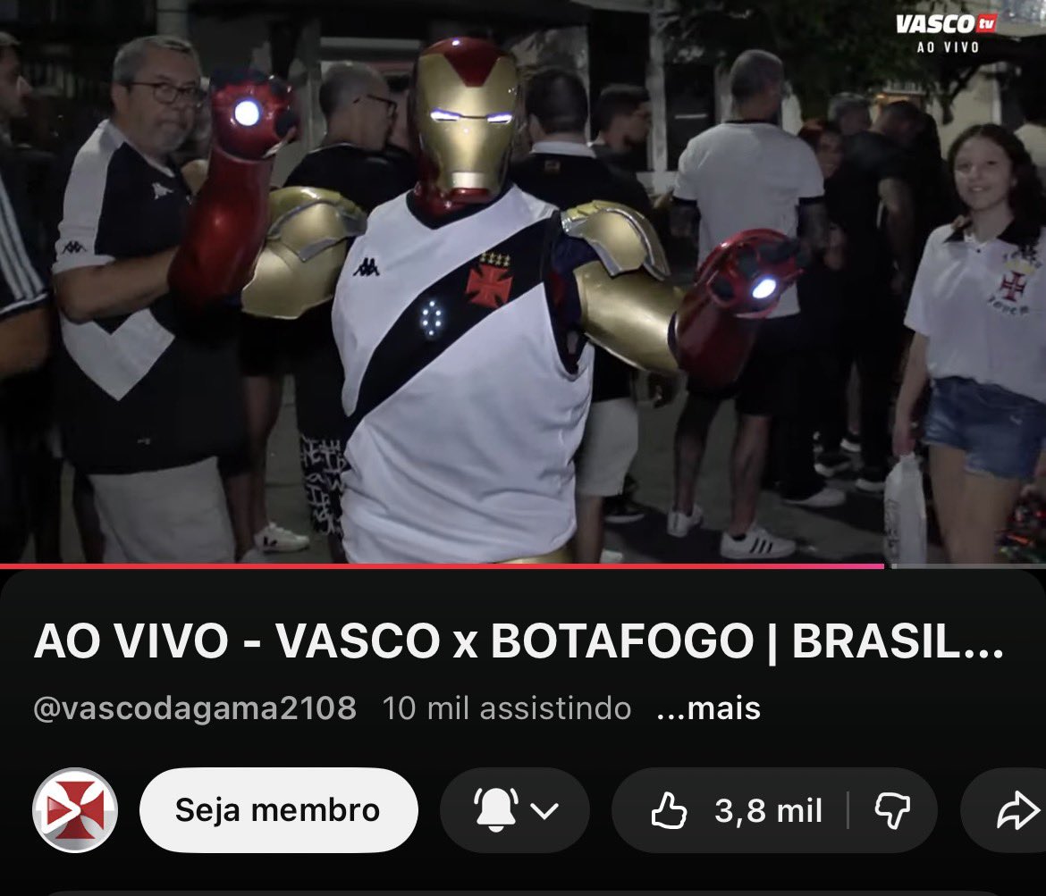 Um torcedor do Vasco compareceu a São Januário vestido como o personagem Homem de Ferro.