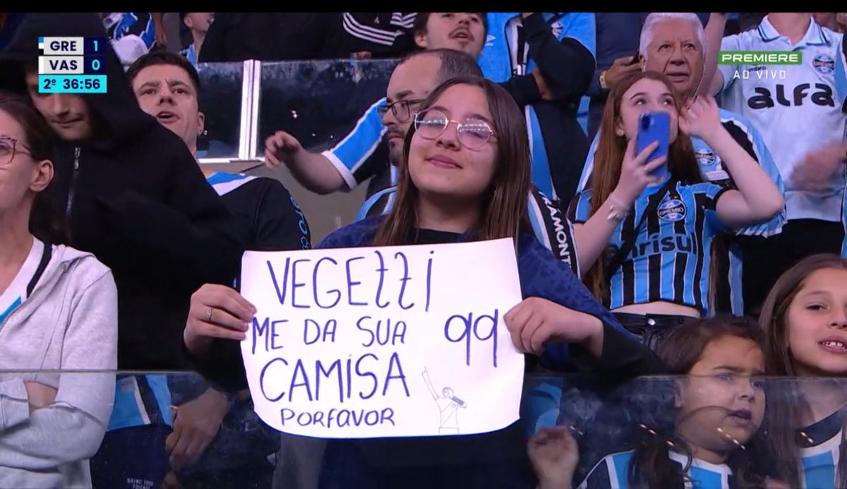 Torcedora do Grêmio solicitou camiseta de Vegetti em cartaz; confira.