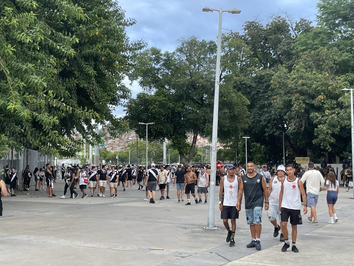 A torcida do Vasco está em grande número nas proximidades do Maracanã.