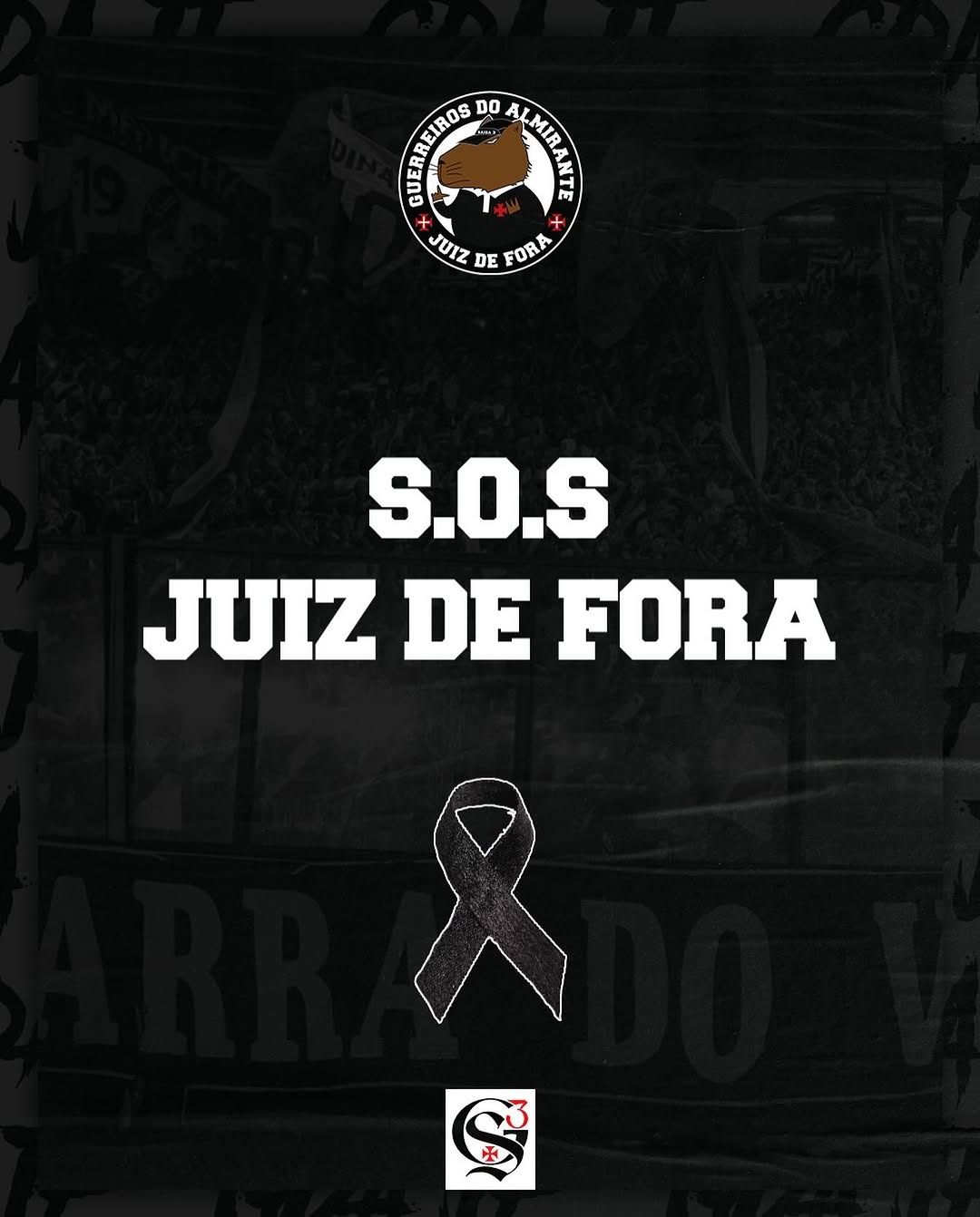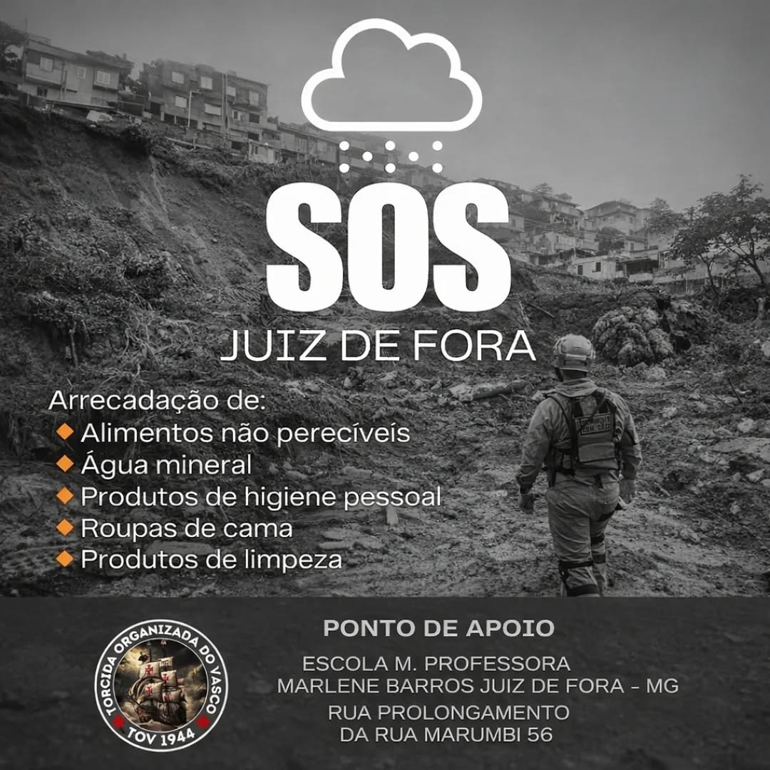 A TOV – Torcida Organizada do Vasco expressa sua solidariedade ao povo de Juiz de Fora em meio a este momento difícil.