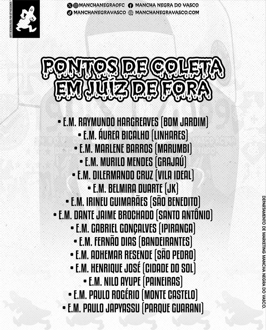 ATENÇÃO AOS PONTOS DE ARRECADAÇÃO: SEDE MANCHA NEGRA (RJ), ARRASTE PARA O LADO E VEJA OS PONTOS DE JUÍZ DE FORA!