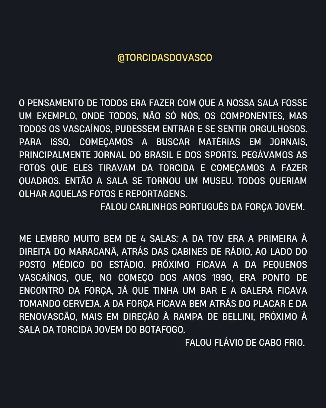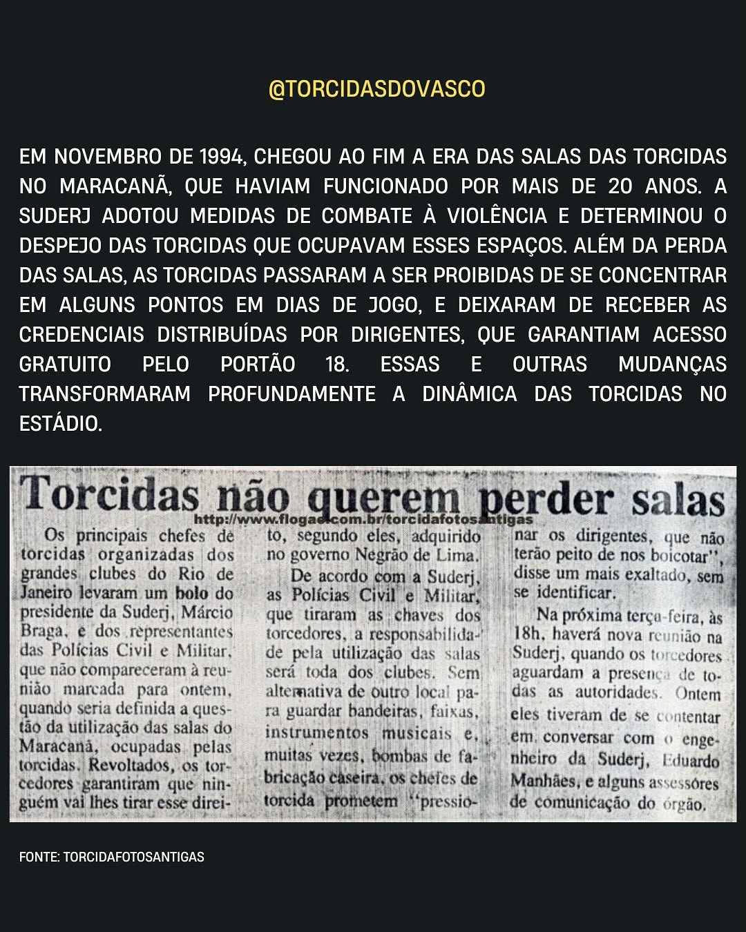 Torcidas organizadas do Vasco já tiveram 5 salas no Maracanã; saiba mais sobre essa trajetória.