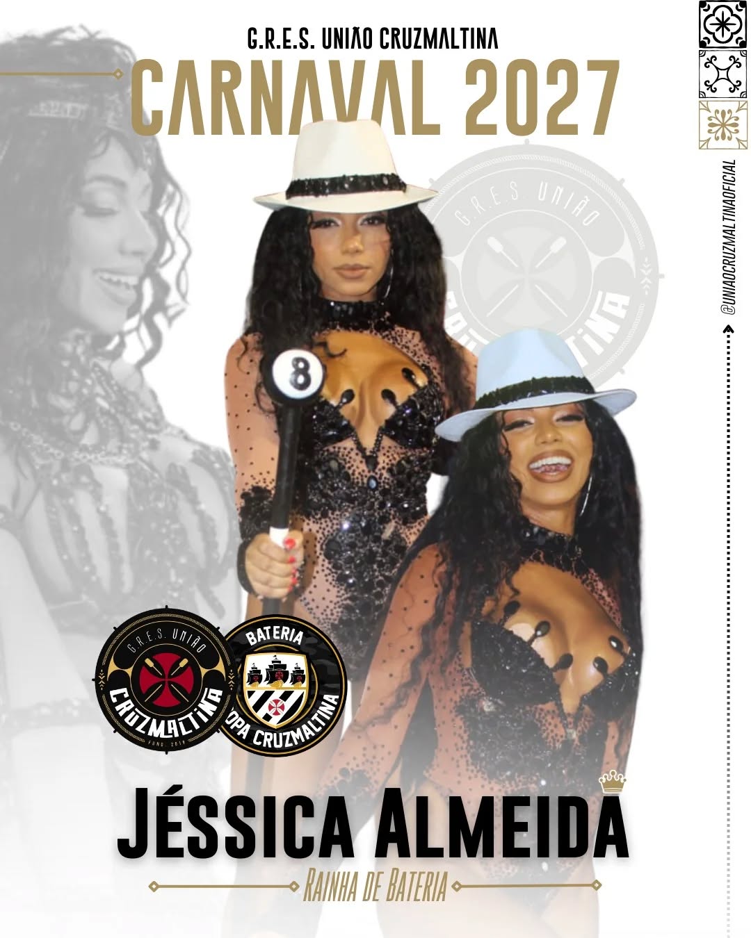 União Cruzmaltina confirma Jéssica Almeida como rainha de bateria para o Carnaval 2027