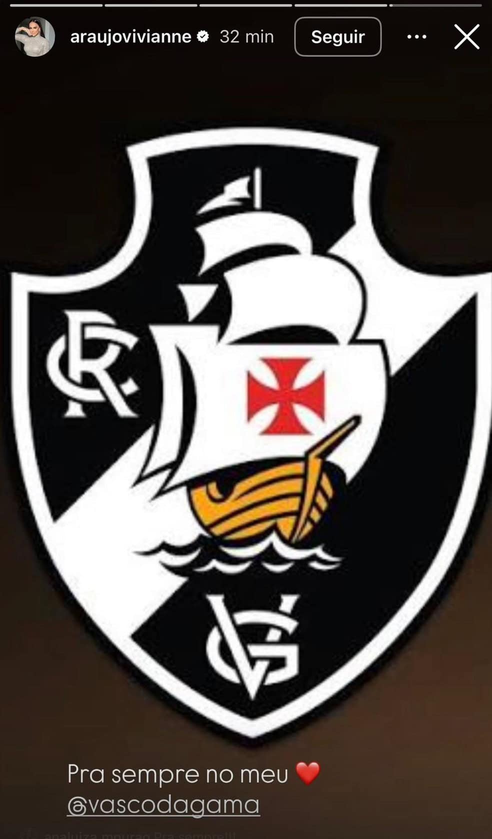 Viviane Araujo lamenta derrota do Vasco — Foto: Reprodução/Instagram