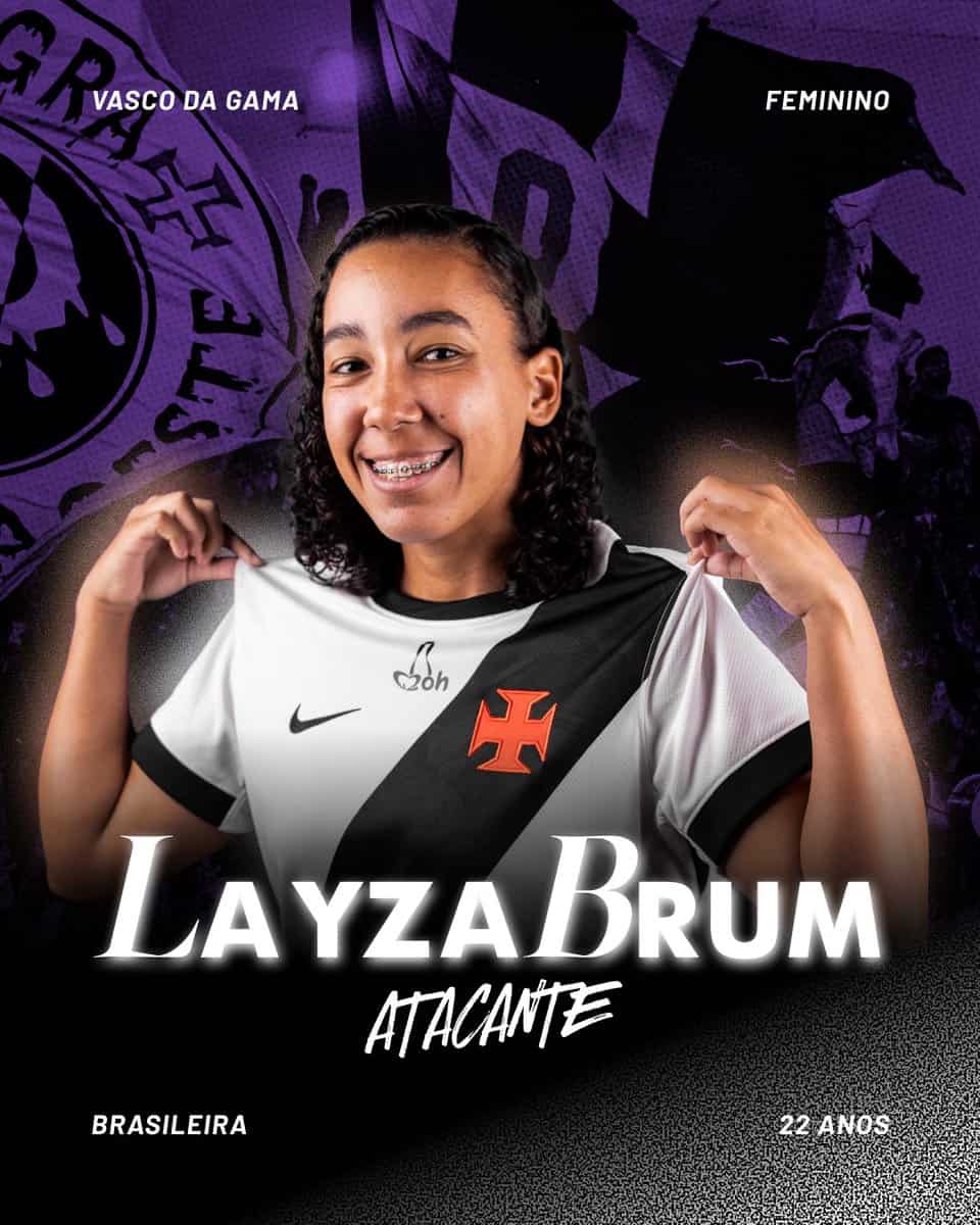 O Vasco da Gama anunciou a contratação da atacante Layza para a temporada 2026 com as Meninas da Colina. A atleta de 22 anos é natural de Recife (PE) e chega ao Gigante da Colina após passagem pelo Sport Clube do Recife, onde disputou o Campeonato Brasileiro A1 no ano passado. Em 2025, Layza teve bom desempenho ofensivo, somando 20 jogos, 14 gols e uma assistência.