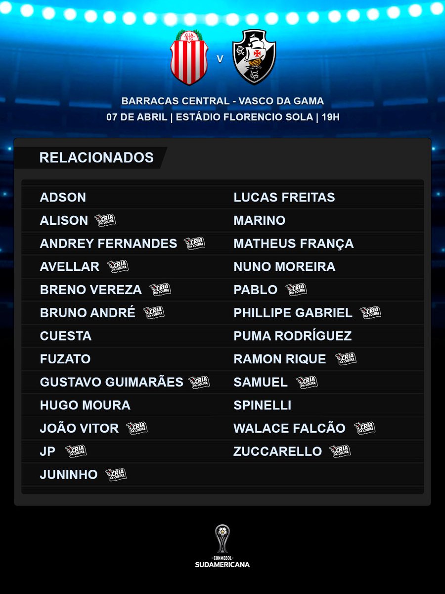 O Vasco divulgou os jogadores que enfrentarão o Barracas Central.