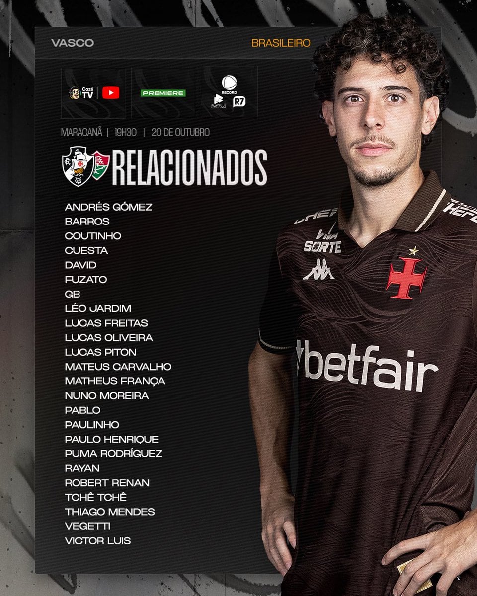 📋 Confira os Jogadores do Vasco para o Clássico de Hoje 💢