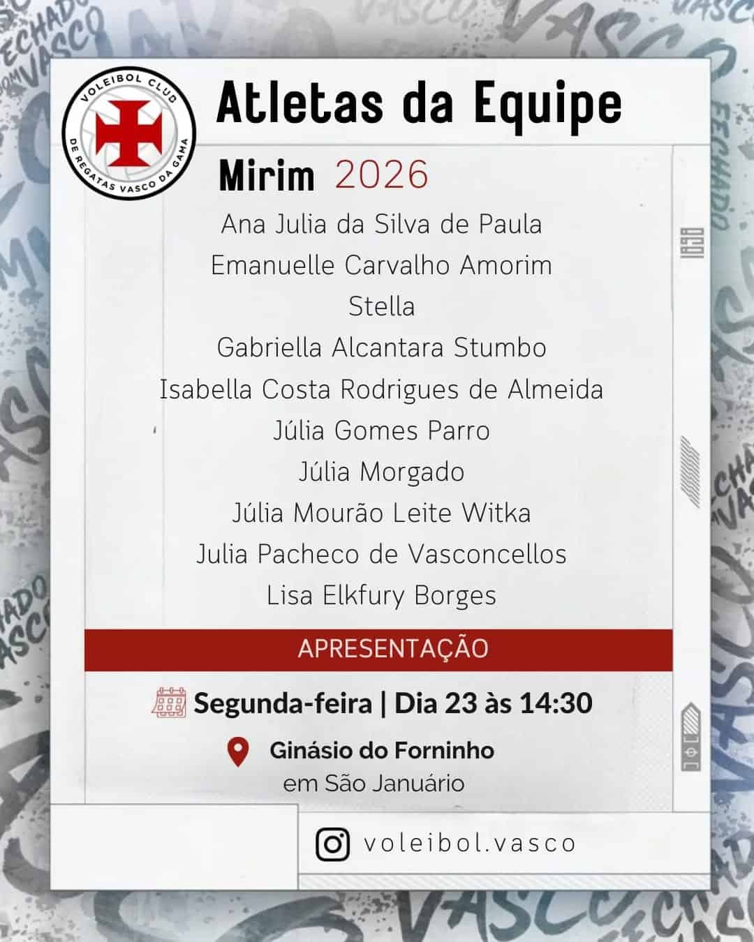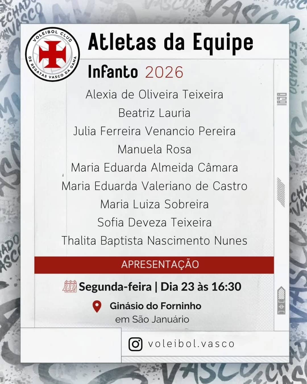 O Vasco divulgou as seleções das categorias Mirim, Infantil e Infanto no vôlei feminino.