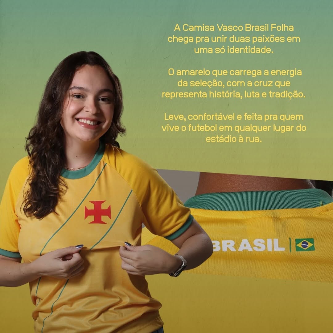 Brasil no peito, Vasco na alma. A nova Camisa Vasco Brasil Folha chegou para aqueles que vivem duas paixões em um só coração.