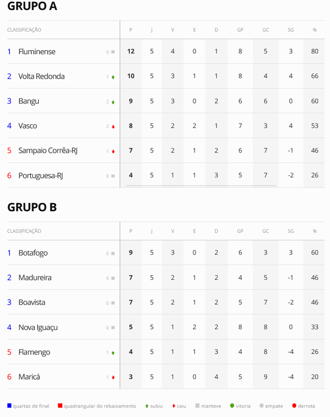 Abaixo, confira a classificação e a rodada final da Taça Guanabara: