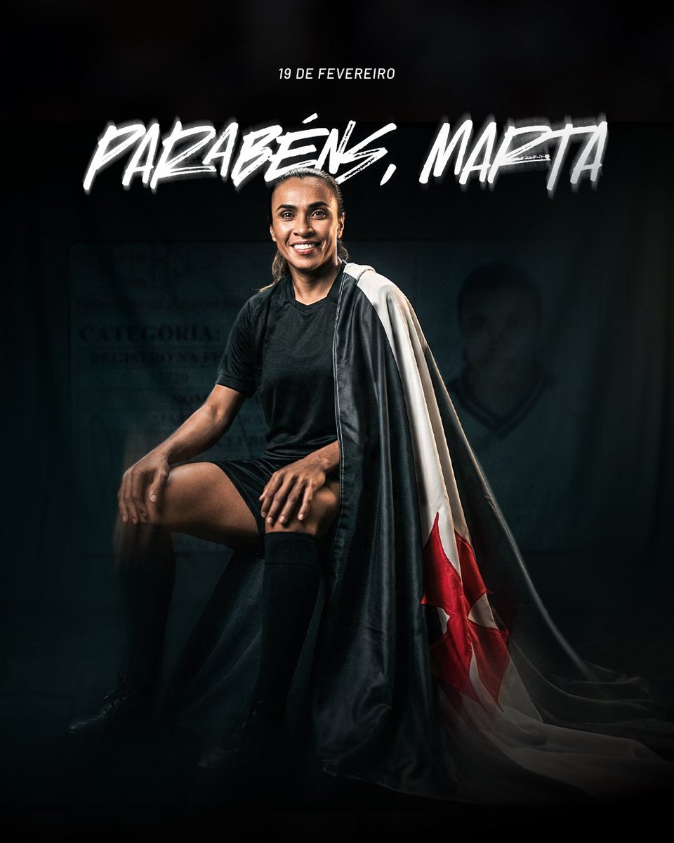 O Vasco comemora o aniversário de 40 anos da jogadora Marta no futebol feminino.