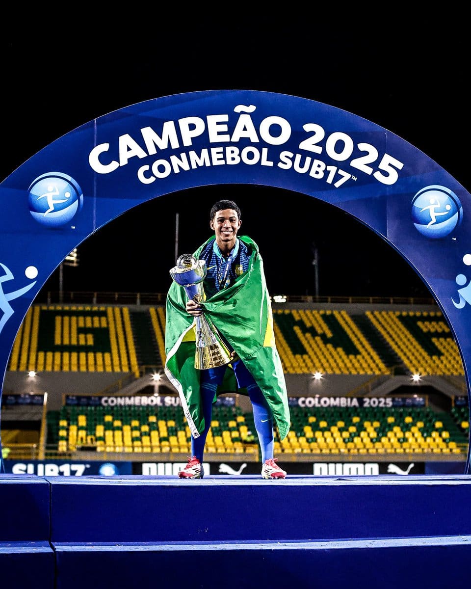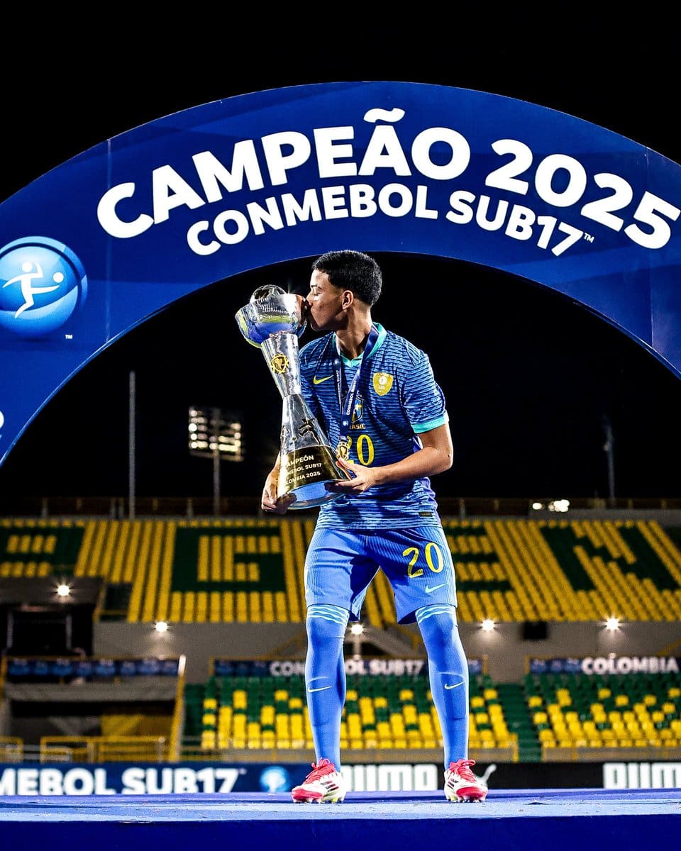 Um grande dia para o nosso futebol! O meia Andrey Fernandes se tornou campeão do Sul-Americano Sub-17 na noite do último sábado, defendendo as cores da Seleção Brasileira. Parabéns a todos que contribuíram para esta conquista brilhante! 🇧🇷🏆💢