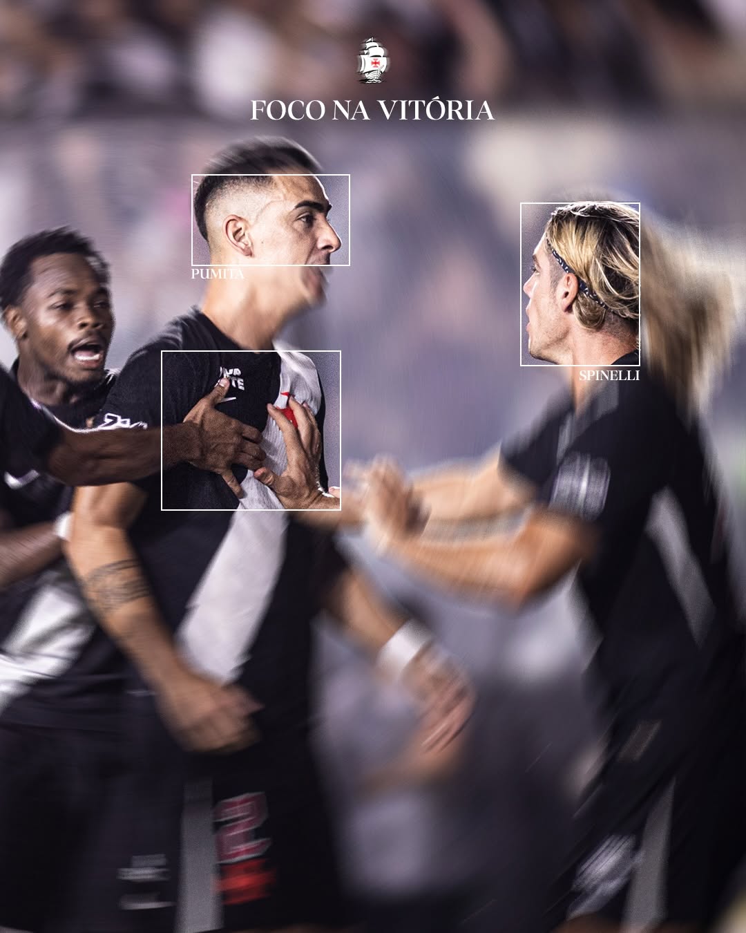 Vasco divulga fotos editadas do confronto contra o São Paulo com a mensagem de motivação 'Foco na vitória'