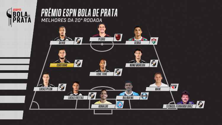 Seleção geral dos melhores do Prêmio ESPN Bola de Prata após 20 rodadas – Foto: Arte/ESPN