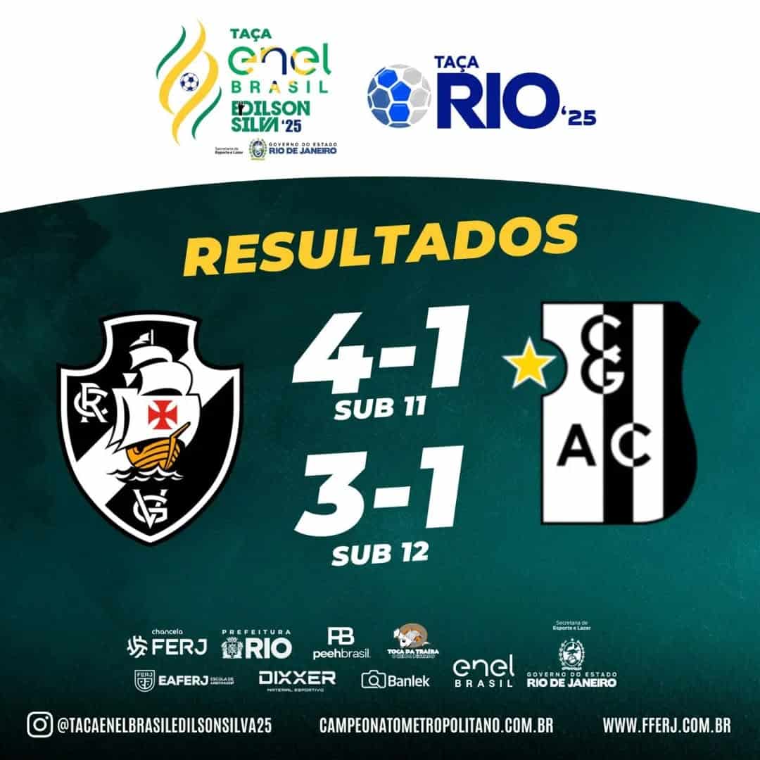 MeuVasco›Base›Vasco conquista vitória sobre o Campo Grande na Taça Rio… Vasco conquista vitória sobre o Campo Grande na Taça Rio das categorias Sub-11 e Sub-12. domingo, 05/10/2025 às 03:23 • Deixe um comentário Placar final Fonte: Instagram Taça Enel Brasil Edilson Silva 25 Receba notícias do Vasco Cadastre seu e-mail para receber os principais destaques do Vasco. Seu e-mail Quero receber Você pode cancelar a inscrição quando quiser. Tags #Crvg #Estadual #GiganteDaColina #Meuvasco #Notícias #Taça Guanabara #Taça Rio #Vasco #VascoDaGama