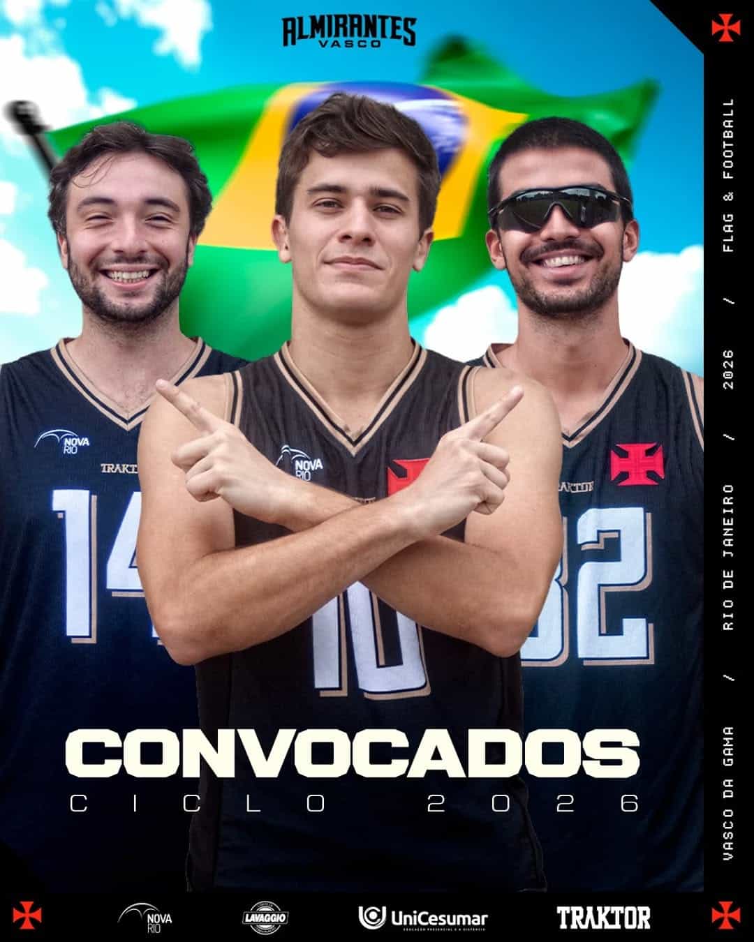 O Vasco da Gama tem três jogadores convocados para representar a Seleção Brasileira de Flag Football em competições internacionais.