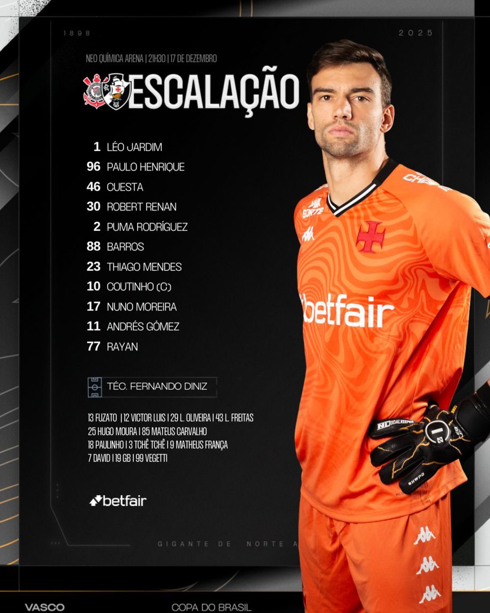 O Vasco da Gama está preparado para o primeiro duelo decisivo da Copa do Brasil, uma das competições mais importantes da temporada. A escalação do time reflete a determinação da equipe em buscar a vitória e conquistar um lugar na história do torneio.