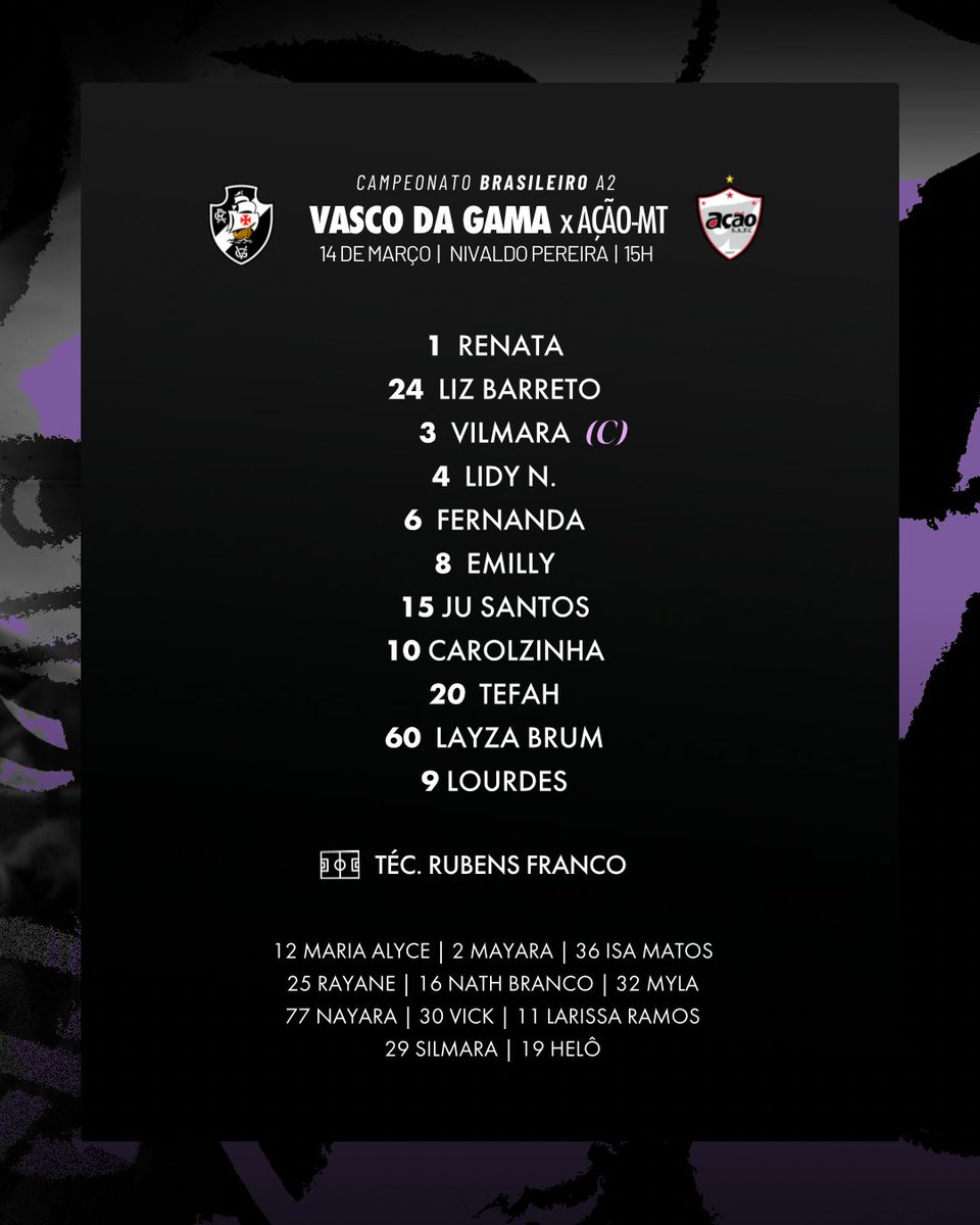 O Vasco anuncia a escalação do time feminino para o confronto contra o Ação.