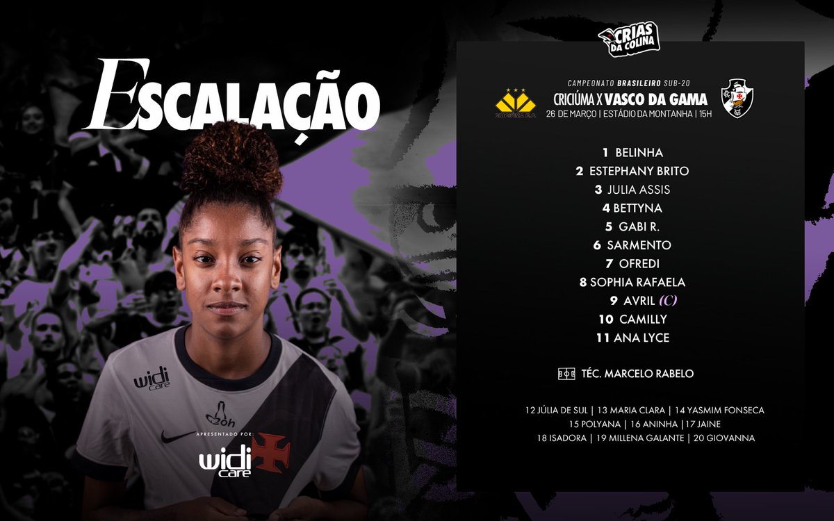 O Vasco anunciou a escalação do time feminino de base para o jogo contra o Criciúma.