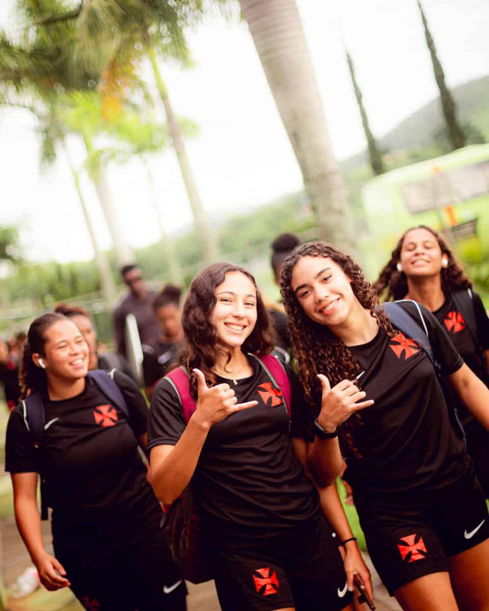 Vasco compartilha registros da equipe Sub-20 feminina chegando ao centro de treinamento Nivaldo Pereira.