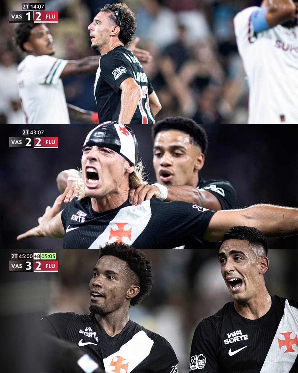 Vasco divulga imagens dos gols sobre o Fluminense com minutos detalhados