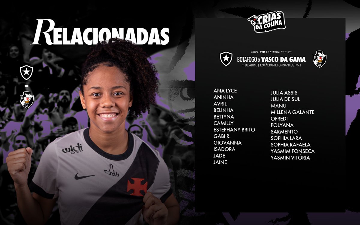 O Vasco anuncia as jogadoras convocadas para o jogo feminino contra o Botafogo.