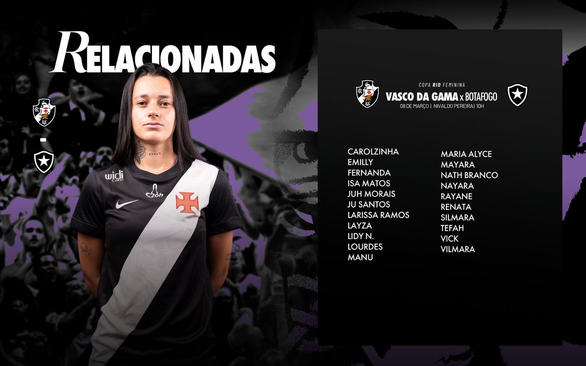 Vasco anuncia relação de jogadoras para partida contra o Botafogo no futebol feminino.