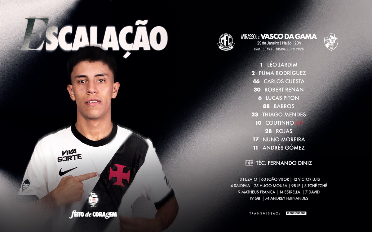 O Vasco da Gama está definido para a sua estreia no Campeonato Brasileiro 2026, onde enfrentará o adversário em busca de um bom resultado. A equipe se prepara para os primeiros 90 minutos da competição, com expectativas em torno da performance dos jogadores e da estratégia que será utilizada em campo.