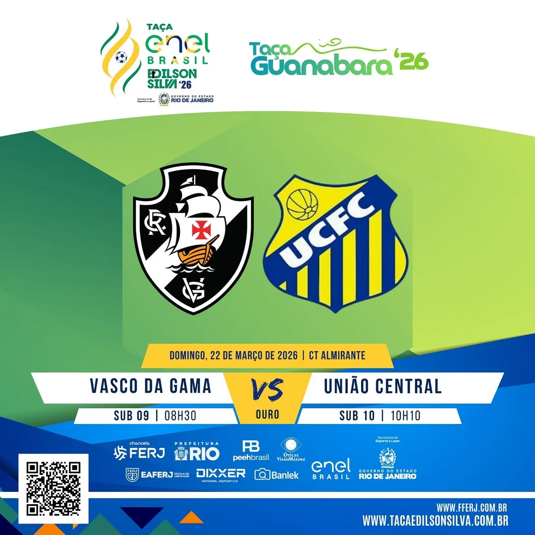 Vasco enfrenta União Central nas categorias Sub-09 e Sub-10 pela Taça Guanabara neste domingo.